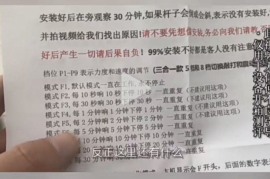 记者看到,这款新型震楼器安装通电后,共有9种档位可以提供不同的震动力度和速度,还有9种模式,可以设置发出敲打声的时间间隔。添加客服后,对方迅速发来一份价目表,按照震动、敲打模式的搭配,这款“楼吵克星”的价格分为169元、189元、209元三个档次,选配手机遥控功能要额外再支付65元。